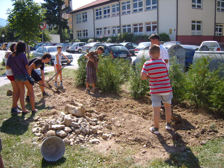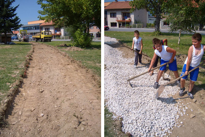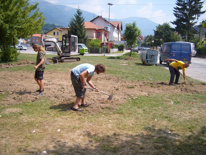 Our team of volunteers from around the world with volunteers from the divided town of Gornji Vakuf Uskoplje built a park together. The land was donated from the local government and is located directly across from the ethnically divided school.